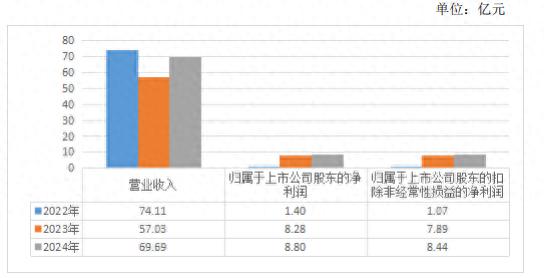 2024年,中原高速实现营业收入69.69亿元,同比增加12.66亿元,增幅 22.20%,其中通行费收入44.59亿元;实现归属于上市公司股东的净利润8.80亿元,同比上升6.27%。